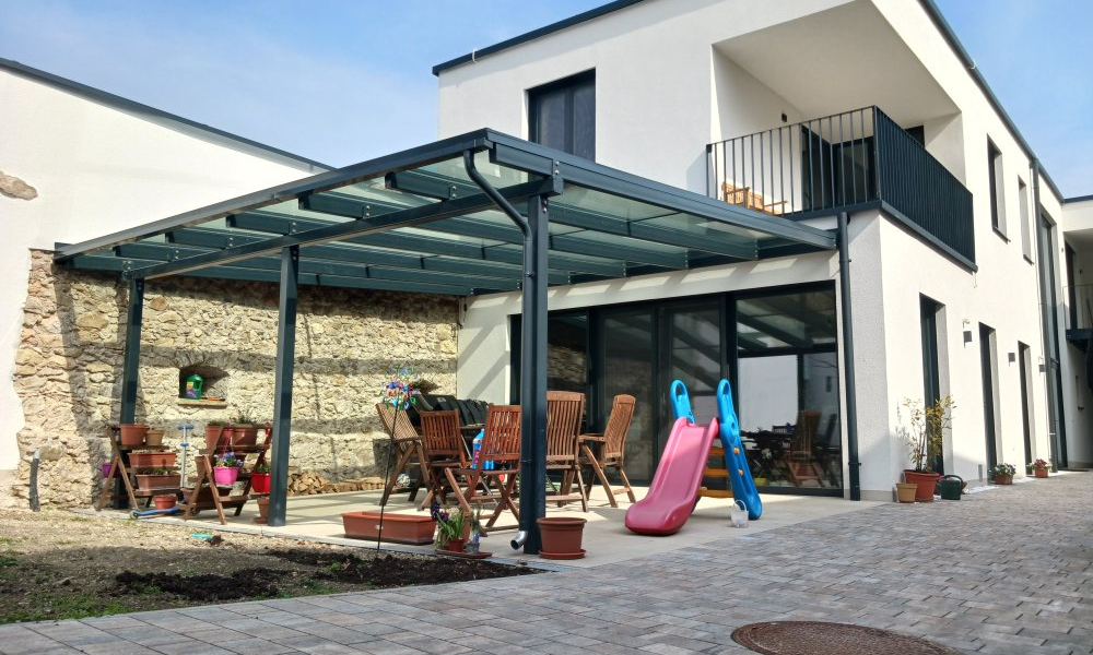 Eine Terrassenüberdachung ist der ideale erste Schritt, der später problemlos erweitert werden kann.