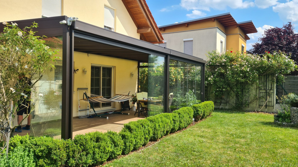 Ein Sommergarten ist ein halbgeschlossener Raum, der meist mit verschiebbaren Glaswänden ergänzt wird. Dadurch kannst du deine Terrasse unabhängig vom Wetter komfortabel nutzen.