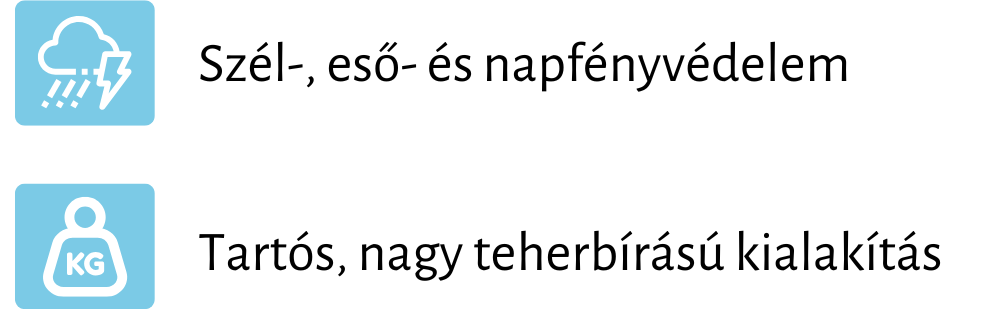 - Akár 180-200 km/óra szélsebességnek is ellenáll