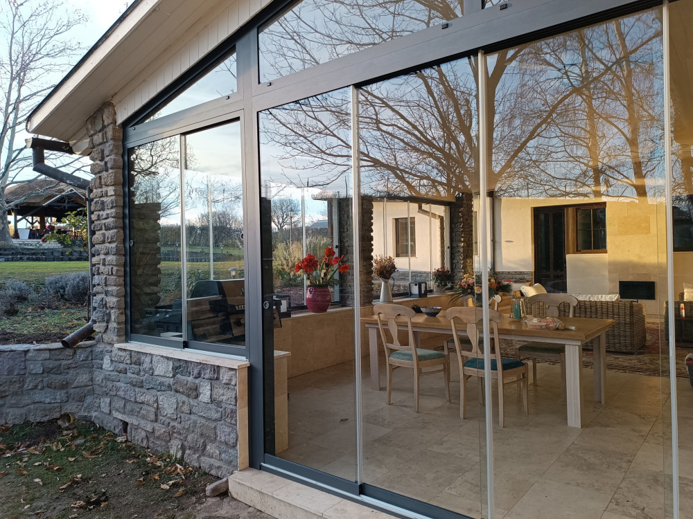 Teraszbeépítés eltolható üvegfalakkal