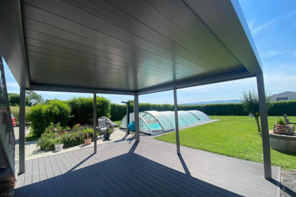 A lamellás pergola a modern otthonok egyik legnépszerűbb kültéri megoldása, ami bioklimatikus működésének köszönhetően egész évben kényelmes és kitűnően automatizálható árnyékolást biztosít.